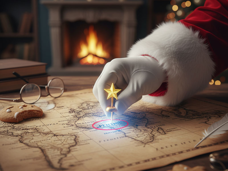 Santa and His Elf Move the North Pole Post to Athens