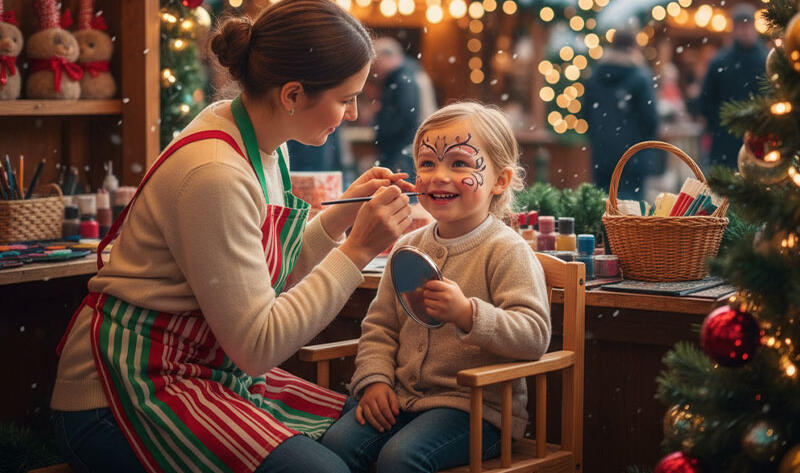 Στο Christmas Park, η φαντασία ζωντανεύει με τα πιο χαρούμενα χρώματα! Το χριστουγεννιάτικο facepainting μεταμορφώνει μικρούς και μεγάλους σε ξωτικά, ταράνδους, αγγελάκια και ήρωες των γιορτών. Διάλεξε το σχέδιο που σου ταιριάζει και άφησε τους καλλιτέχνες μας να δώσουν στο πρόσωπό σου λίγη από τη μαγεία των Χριστουγέννων!