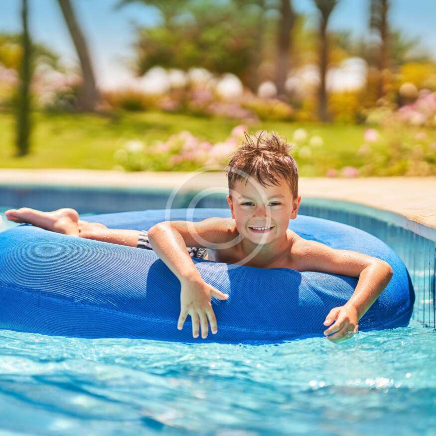 Swimming pools, water slides, splash pads, and lazy rivers for children